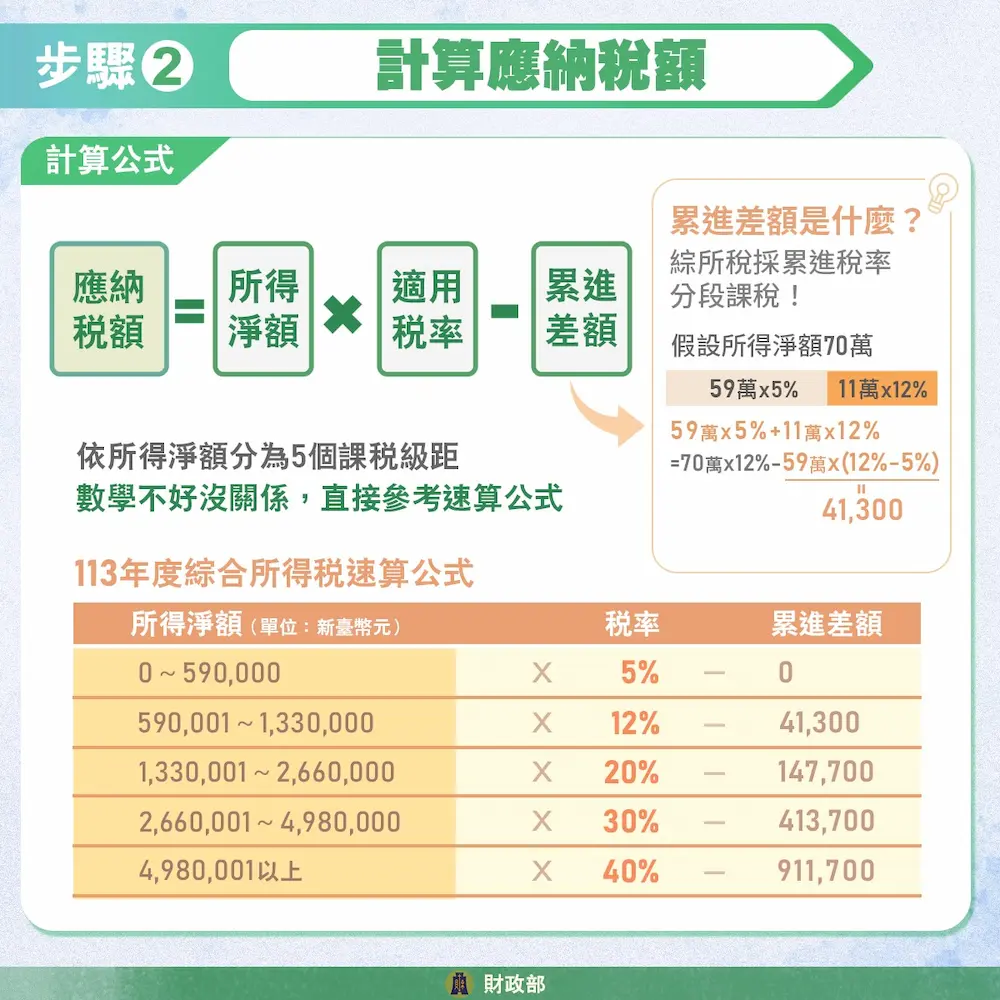 個人綜合所得稅的計算分為七大步驟,2025年適用最新稅制與級距,流程如下: