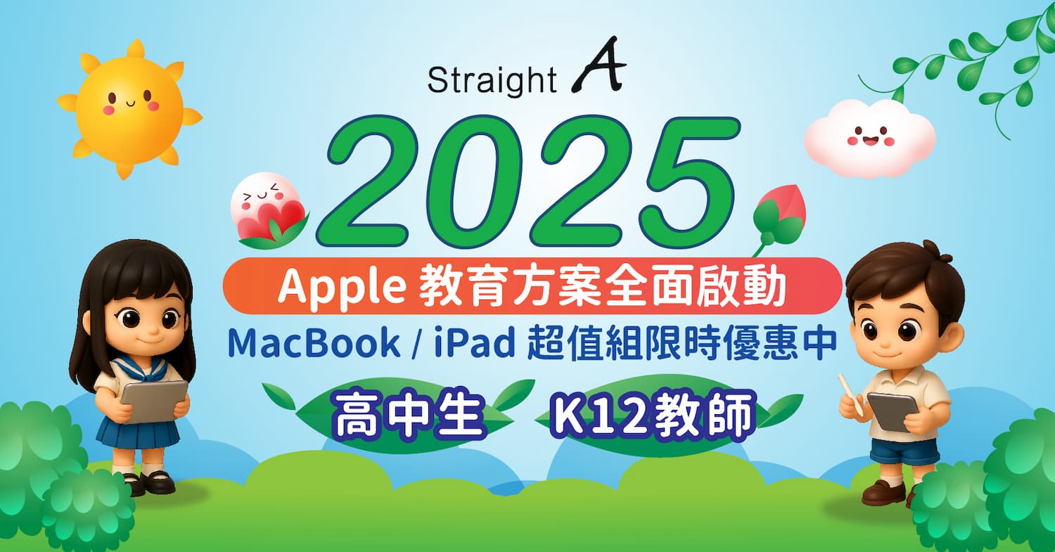 全台學生族群與教育工作者有福了!STUDIO A 旗下的 Straight A,作為台灣首家 AAES 授權教育專家,今夏正式啟動 2025 Apple BTS (Back To School) 開學季優惠。不同於以往,Straight A 不僅提供 Apple 官方教育優惠價,更破天荒推出多項獨家加碼,讓您省更大,最高可狂省 $22,500!