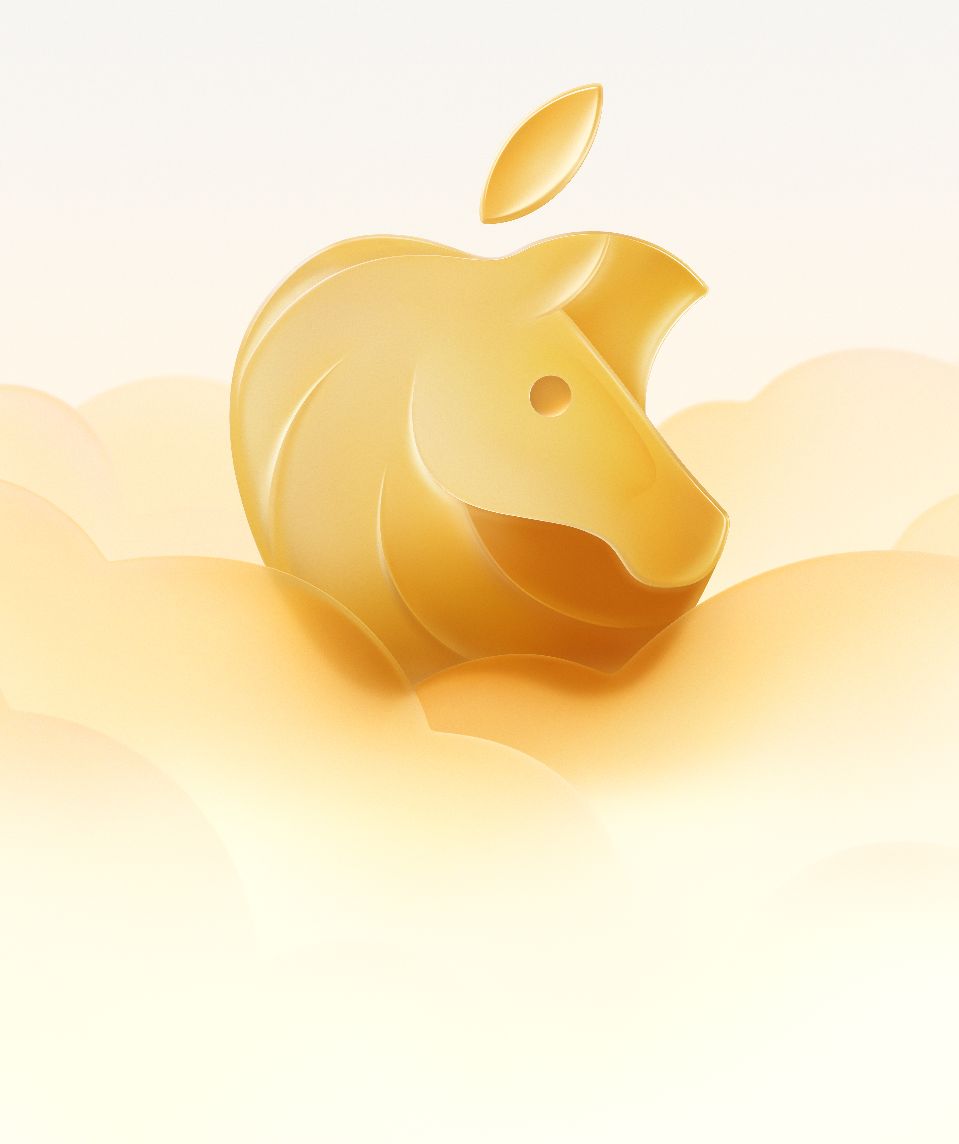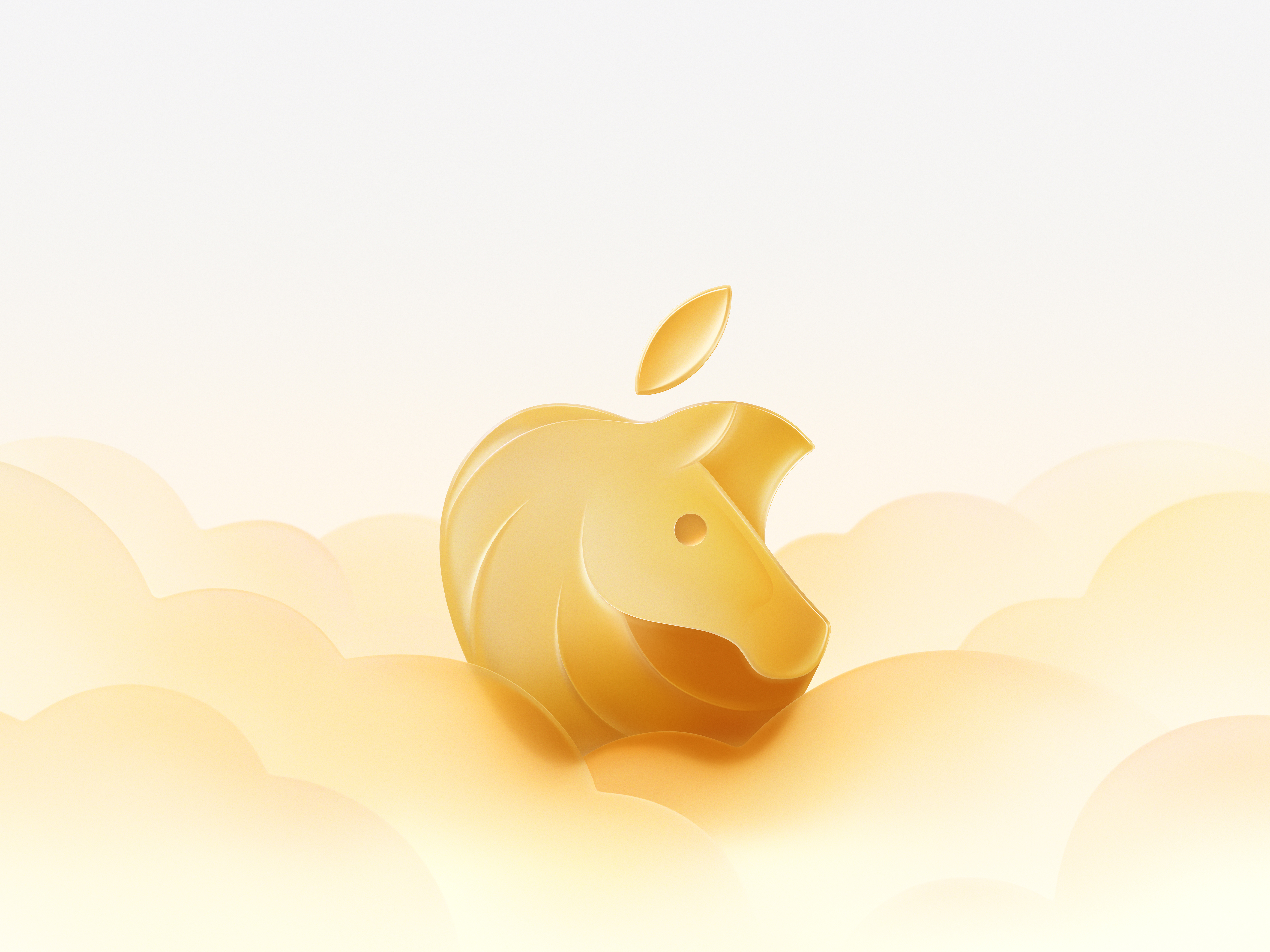 桌布上方的葉子像是點睛的細節,讓整個畫面更有生命力,底下搭配一層一層柔軟的雲朵,整體看起來像是金色祥雲中冒出一個馬年版 Apple 標誌,畫面很乾淨、不複雜,當桌布時不會干擾圖示,又保有滿滿的新年祝福感,算是過年限定的新年桌布。