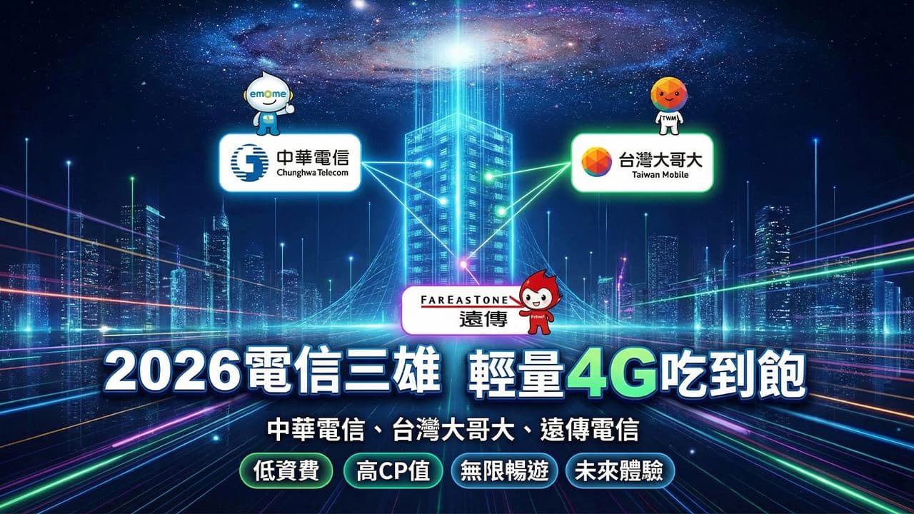 隨著 5G 普及,傳統的 4G 不降速吃到飽資費反而越來越貴,有不少精打細算的用戶都開始轉向「輕速4G吃到飽」,如果你是輕度上網族、學生、樂齡長輩,或是需要第二個備用門號,每個月動輒 $499、$599 的資費顯得相當浪費。在 2026 年電信三雄(中華電信、台灣大哥大、遠傳電信)都有推出隱藏版的低資費4G吃到飽方案,月租費最低只要 $129,那究竟 3Mbps 與 1Mbps 的網速夠用嗎?哪家最划算? 本文幫你一次整理省錢攻略。
