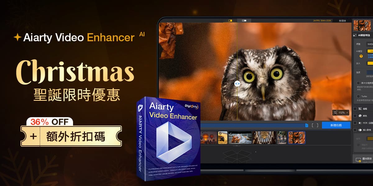 每年聖誕節前後,各大軟體工具都會推出限時優惠活動,今年也不例外,由知名軟體開發商 Digiarty在聖誕檔期祭出了殺手級優惠,將旗下知名 AI 影片修復工具 Aiarty Video Enhancer 推出限時聖誕限定優惠,同時還推出 64 折終身授權方案,並搭配專屬折扣碼,讓用戶能以極低價格甚至接近免費的成本,永久使用這款高品質的 AI 影片畫質提升工具。
