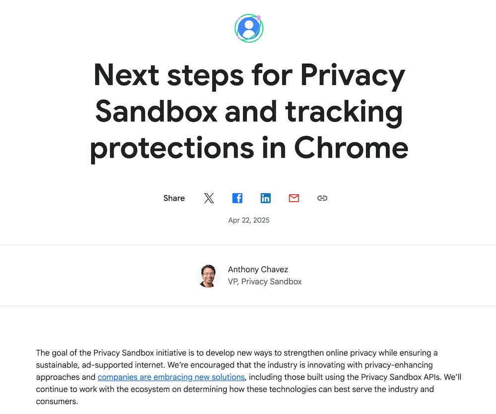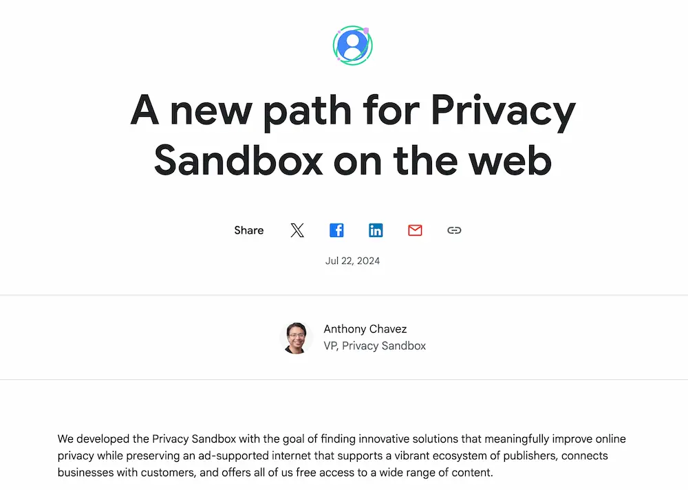 2024 年 Apple 上線 Safari 廣告後僅六天,Google 曾宣布一系列關於第三方追蹤機制的擬議改革,試圖要回應外界對 Chrome 瀏覽器隱私的質疑。