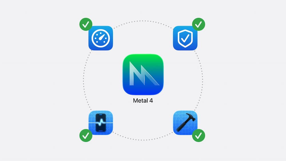 Metal 4是蘋果新一代專為旗下裝置設計的低階圖形API,類似於Windows上的DirectX或Vulkan,它直接與GPU溝通,讓開發者能更細膩地調控硬體資源,目標是能夠提升運行時發揮最大效能和內存效率,並支援所有Apple Silicon(M系列晶片)和A14仿生晶片或更新版本的裝置。
