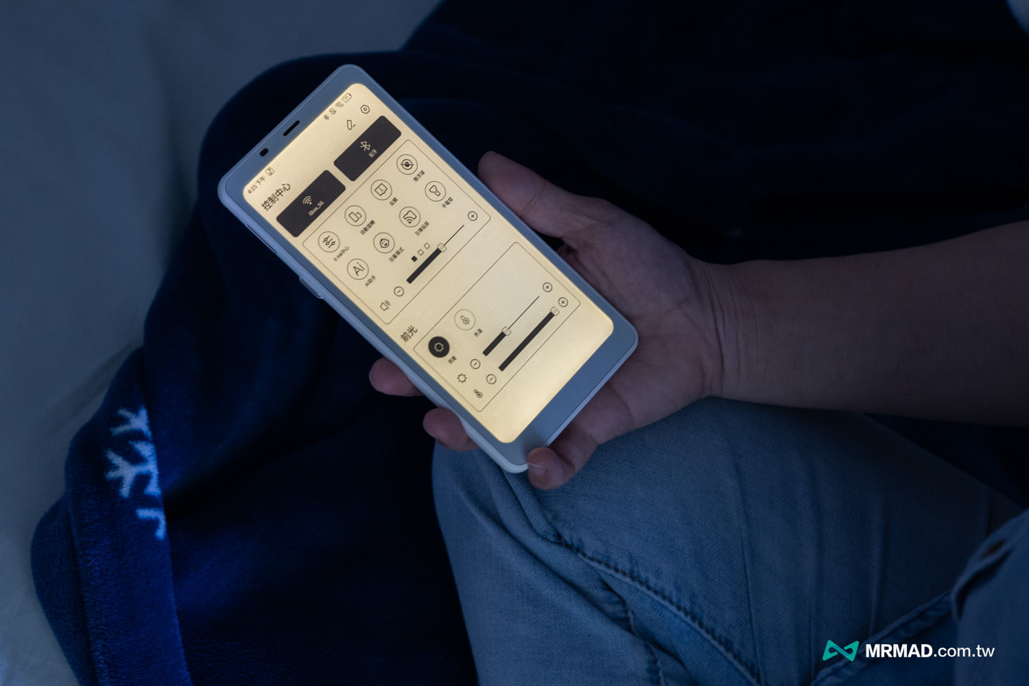 重點是 BOOX Palma 2 它有雙色溫前燈,不管是白天、晚上都能自動調整亮度,晚上睡前看書也不刺眼,眼睛很舒服。長時間看下來,真的比用手機或平板輕鬆很多,完全不用擔心藍光傷眼。