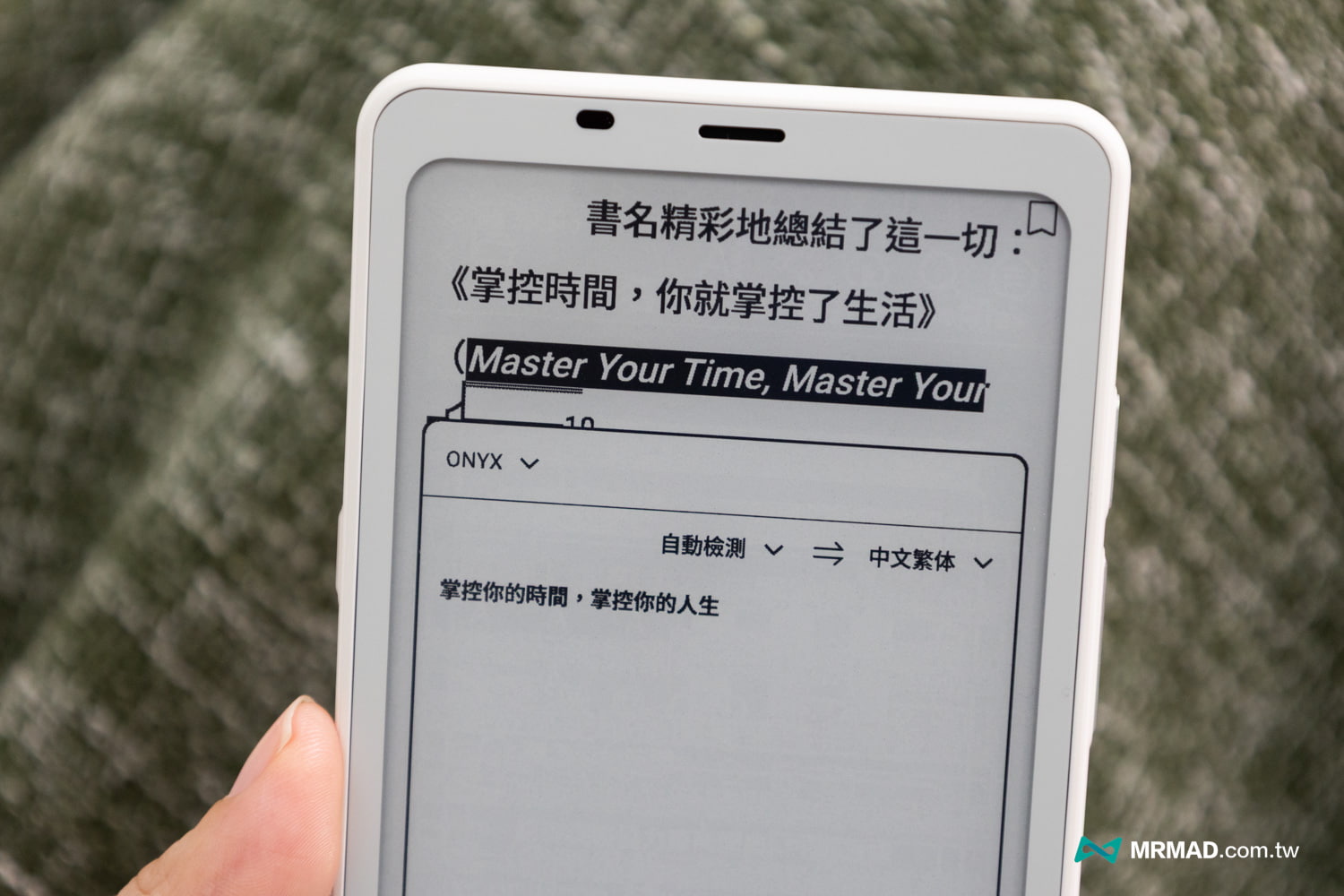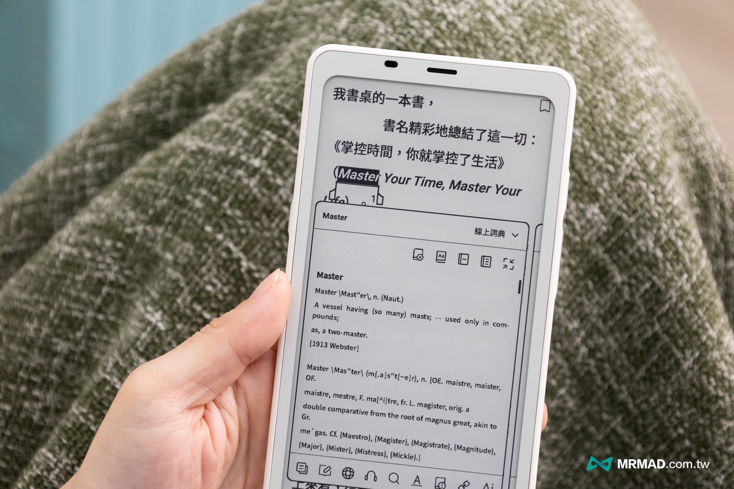 Palma 2 還支援多種語言互譯,要是看見電子書內出現不太明白的語言或說明,就只要長按立即能夠啟用線上辭典功能,並顯示相關詞語說明,手邊實測不管是中文或英文都會顯示。
