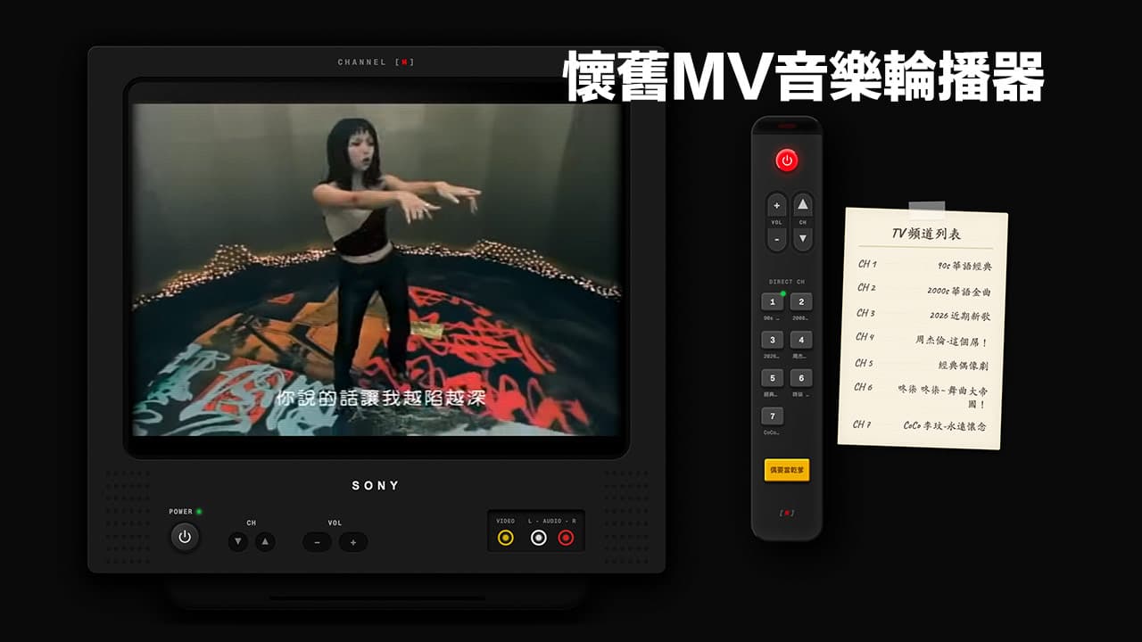 如果你正感到焦慮,或是對現代快節奏的音樂感到疲乏,不妨點開 Channel [M] 懷舊MV音樂輪播器,透過那台 SONY 老電視,帶你回到那個只有好音樂、沒有煩惱的午後。