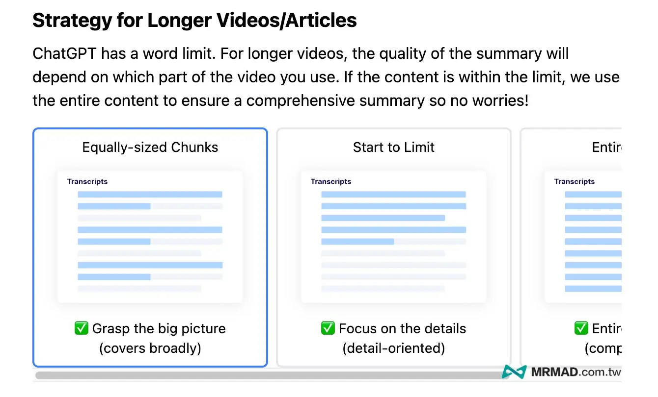 3. 長篇內容摘要策略(Strategy for Longer Videos/Articles)