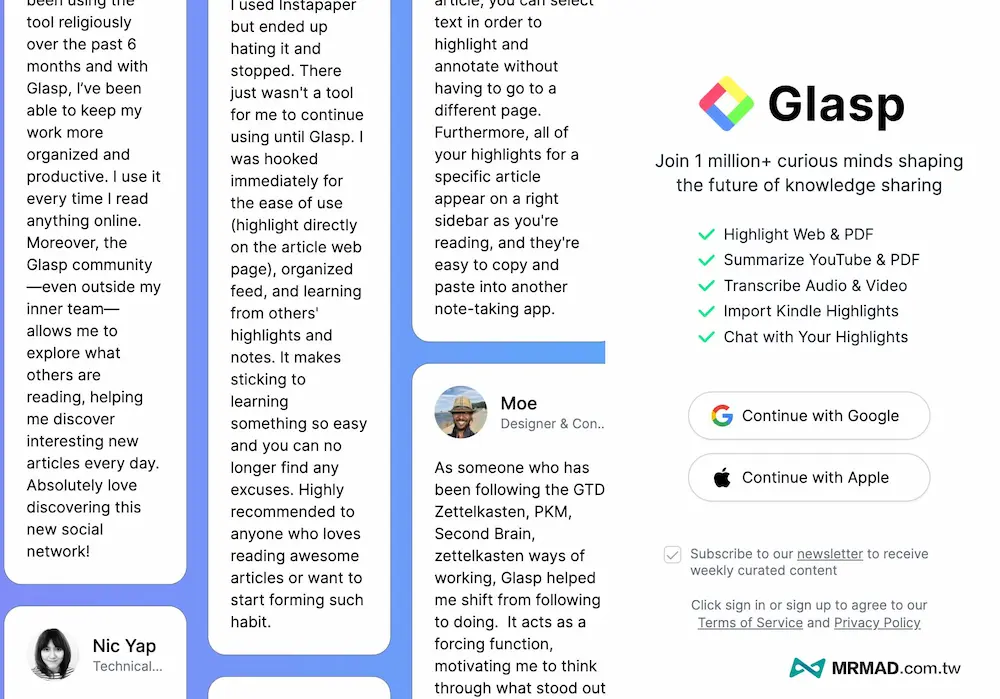 首次安裝擴充功能後,會自動開啟Glasp註冊頁面,可以直接不用理會,關閉分頁同樣能夠正常使用。