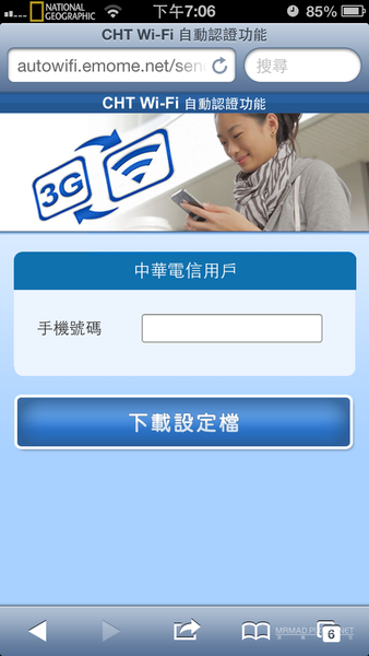 請使用瀏覽器APP打開 『 http://autowifi.emome.net 』這網址