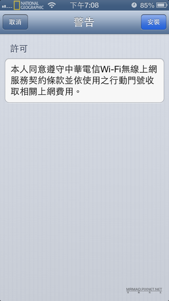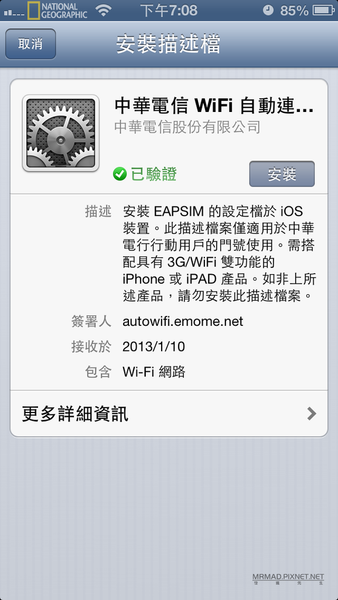 接下來會在一次確認是否要安裝這描述檔? 就點 「 安裝 」 即可