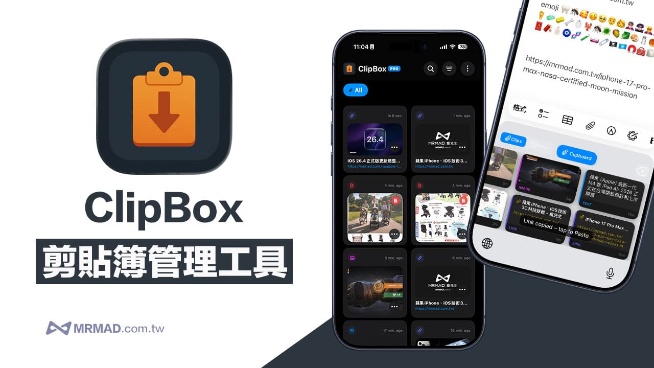 在 iPhone 上複製文字、網址、圖片時,系統剪貼簿一次只能保留最新一筆內容,前面剛複製好的資料,常常一不小心就被下一次操作覆蓋掉,最近 App Store 上就有一款 iPhone 剪貼工具 ClipBox 限時免費大放送 ,只要活動期限內就以完全 0 元領取的買斷 App,想找一款能補強 iPhone 剪貼簿不足、提升複製貼上效率的工具,趕緊依照這篇教學領起來。