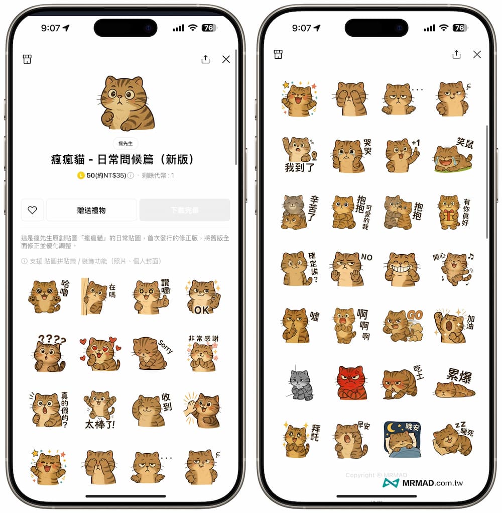 最後為了提供給大家最完美的貼圖品質,決定先下架原版,熬夜趕工到凌晨,把每一張貼圖重新優化、調整設計,直到送審後第三天,新版「瘋瘋貓」貼圖才終於順利再次上架!