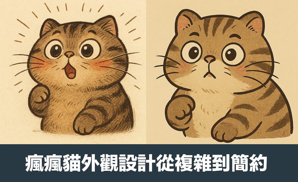 在最初構思《瘋先生》專屬 LINE 貼圖角色「瘋瘋貓」時,其實是來自 ChatGPT 的幫忙,透過真實貓咪照片,轉化成一隻復古又Q版的貓咪角色,後續再搭配繪圖軟體進行外型修正重繪和細節調整,逐步打造出這隻風格獨特、充滿個性的卡通角色,瘋瘋貓外型整體走向獨特復古風格,卻又不失趣味與辨識度。