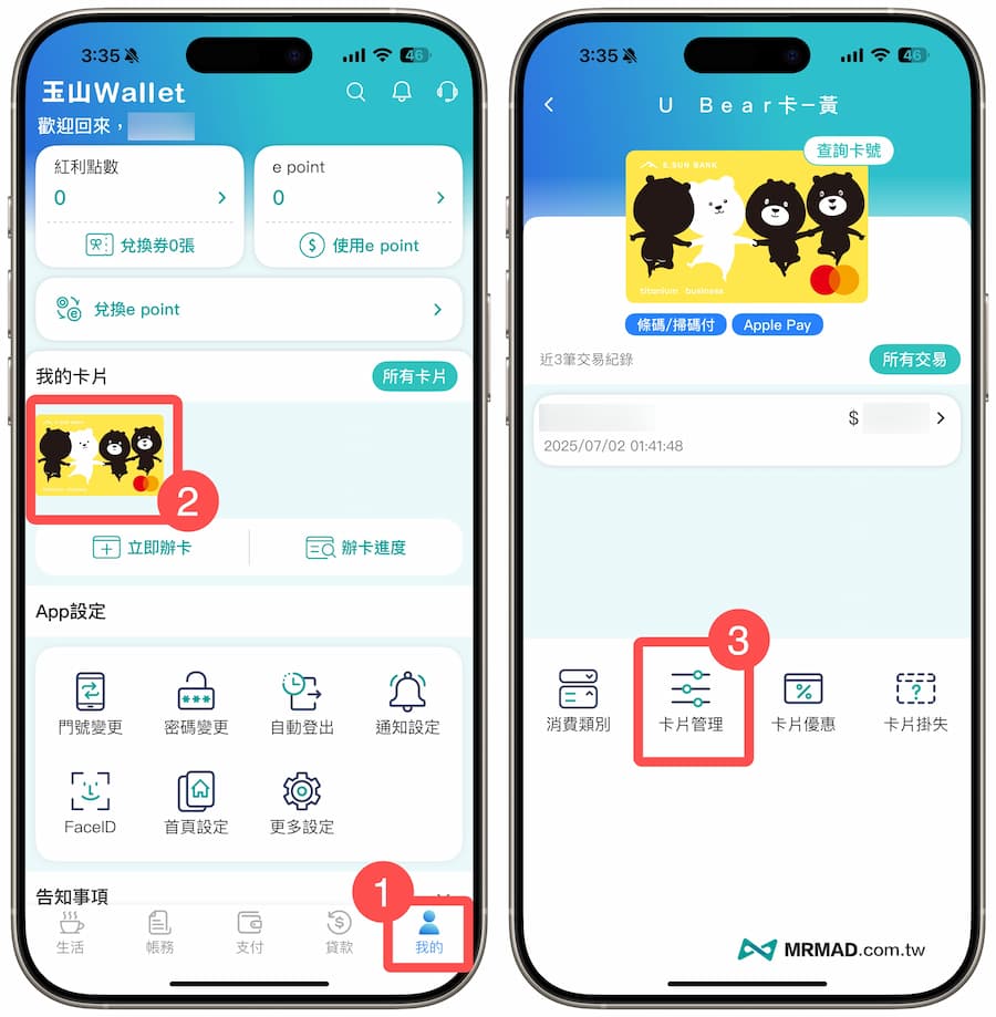 玉山銀行也有提供信用卡安全鎖支付功能,需搭配「玉山 Wallet APP」(iOS、Android)就能自行決定信用卡交易,對於設定玉山信用卡片安全鎖步驟如下: