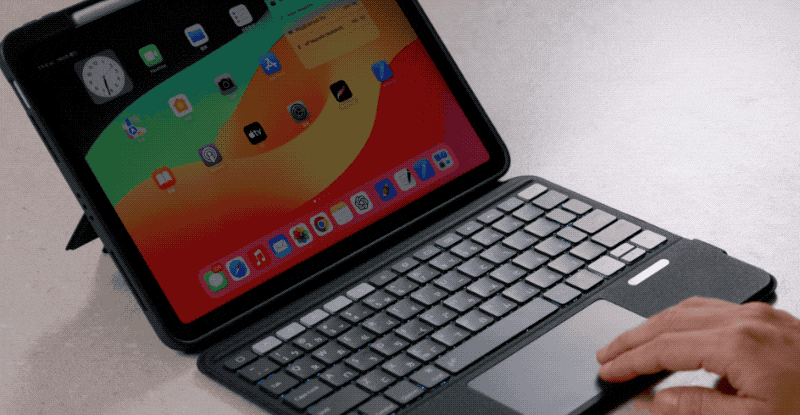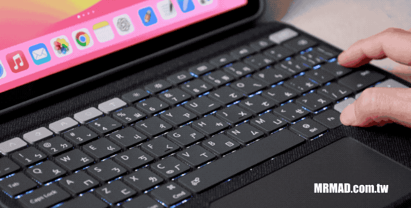 在觸控板也算是相當大,而且能夠支援 iPadOS 完整觸控手勢操作,像是單指清點、雙指滾動或是三指上下滑操作,精準追蹤度和操作都算是無卡頓靈敏,而且能支援最多支援5點同時觸控。