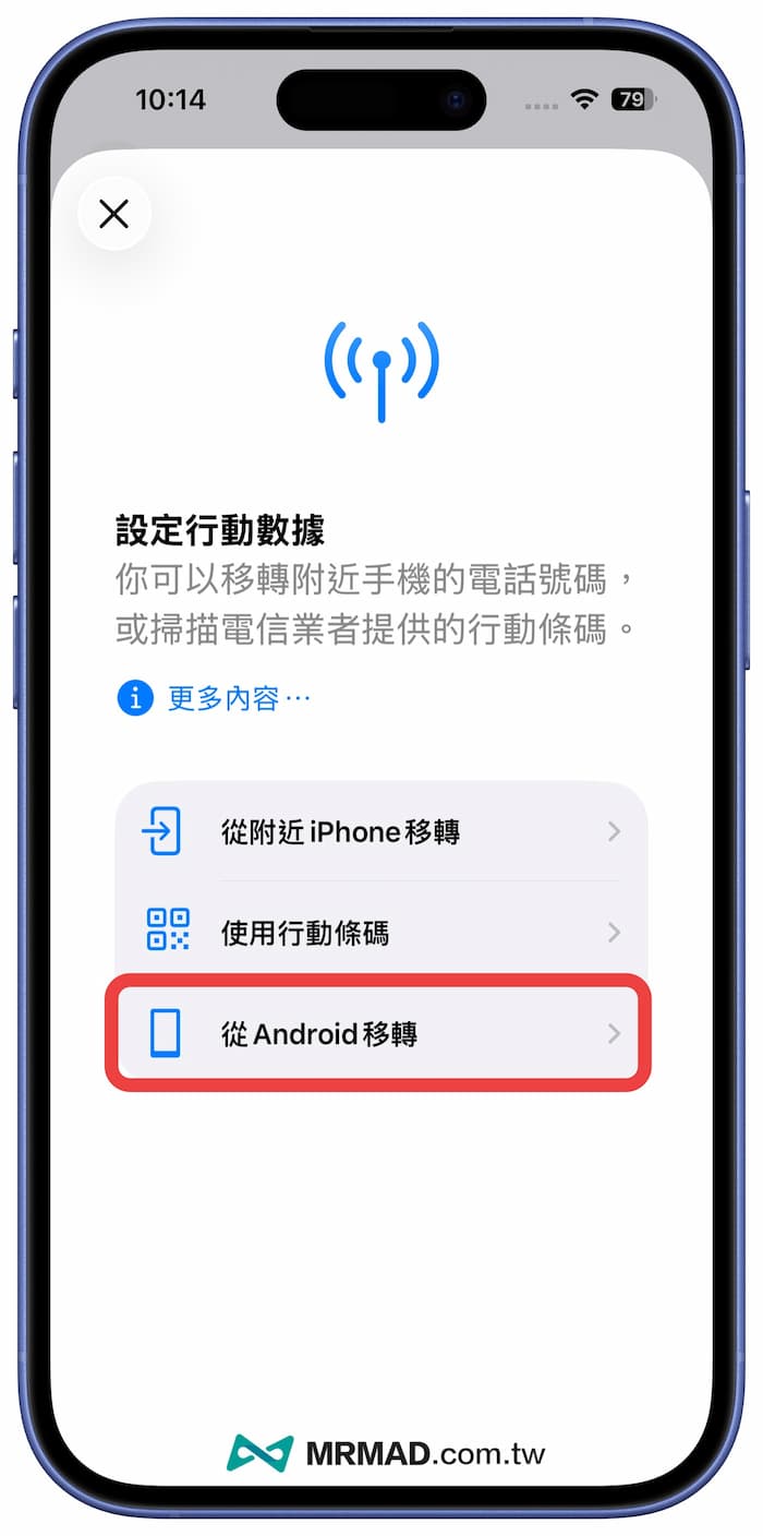 就會看見能夠將eSIM移轉功能選單,如果是要將從iPhone移轉到Android裝置,就點選「從Android移轉」繼續。