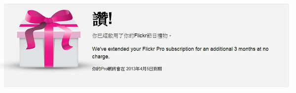 大名鼎鼎的Flickr 今年聖誕節推出免費拿三個月的Pro會員禮物,只要是有加入會員都可以免費索取