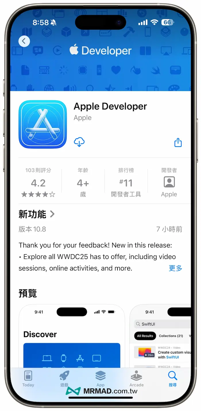 直接透過 iPhone 安裝 Apple Developer App,下載後不需要開啟或登入任何動作。