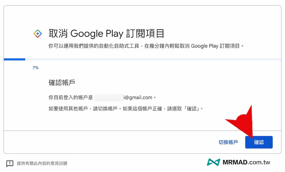 直接點開「取消訂閱Google Pay連結」,先確認目前登入的帳戶,確認後點右下角「確認」繼續。