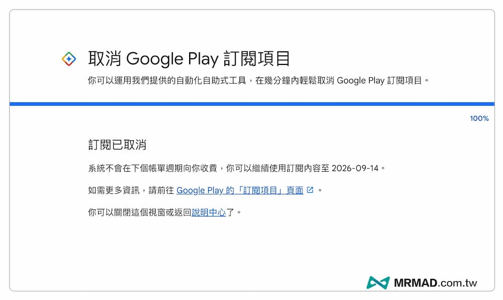 最後看見取消Google Play訂閱已取消,就能夠安心使用免費15個月Google AI Pro學生資格。