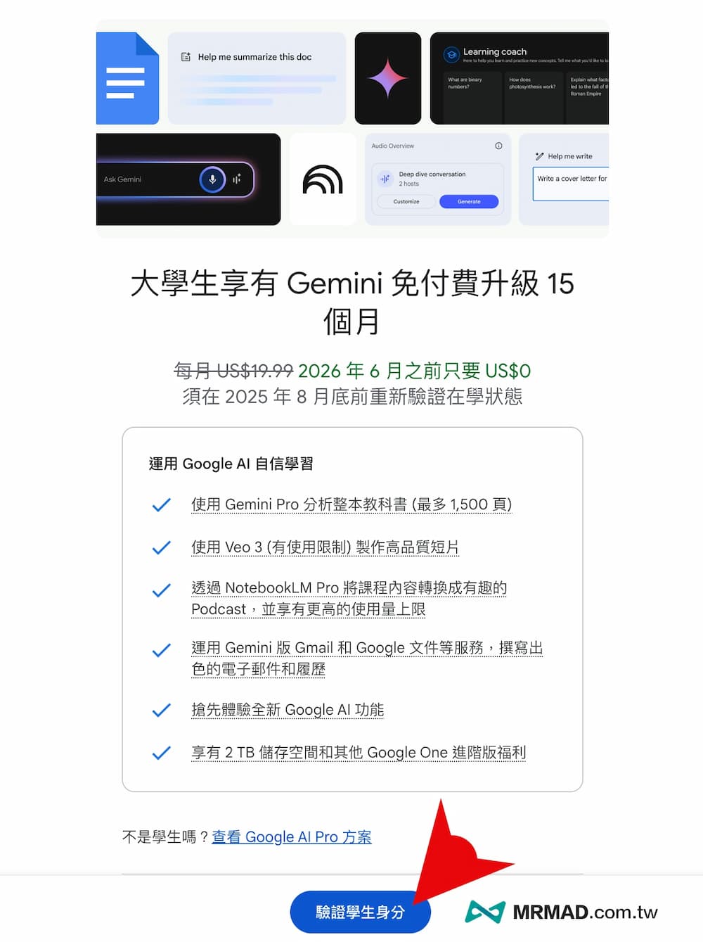步驟三:領取學生免費Gemini升級AI Pro資格