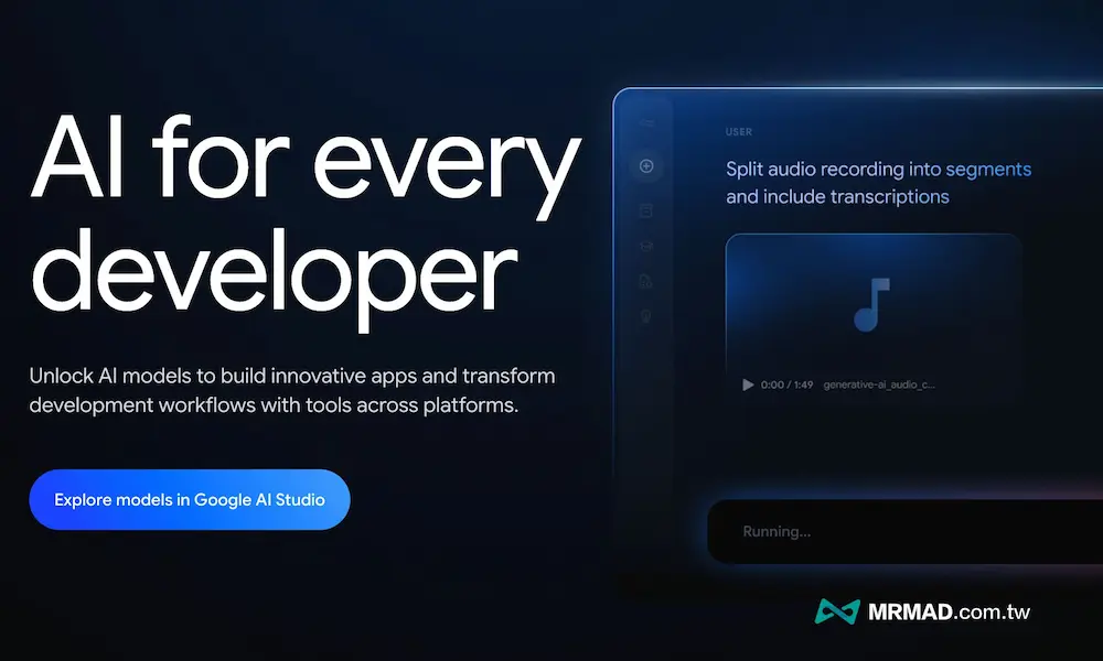 首先開啟瀏覽器後直接進入 Google AI Studio 網頁,並且點擊「Explore models in Google AI Studio」 按鈕進入。