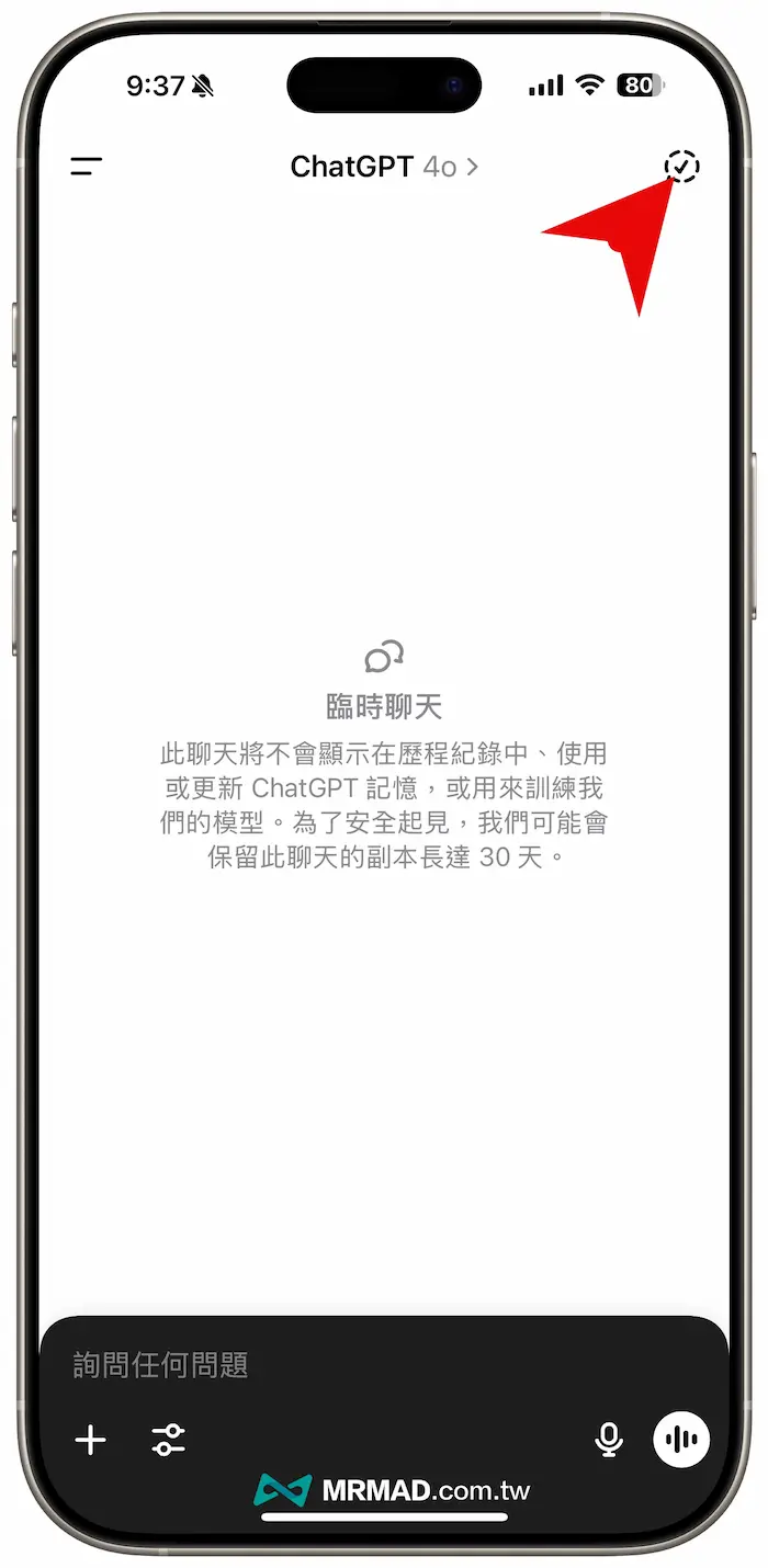 要是想跟ChatGPT詢問比較私密問題,像是算命、星座命盤解析等,過程會需要輸入個資,可以透過ChatGPT右上角點開「臨時聊天」模式,開啟後聊天對話也不會保留於歷史紀錄、更新ChatGPT記憶,還不會用於AI模型訓練,唯獨只會保留聊天副本30天。
