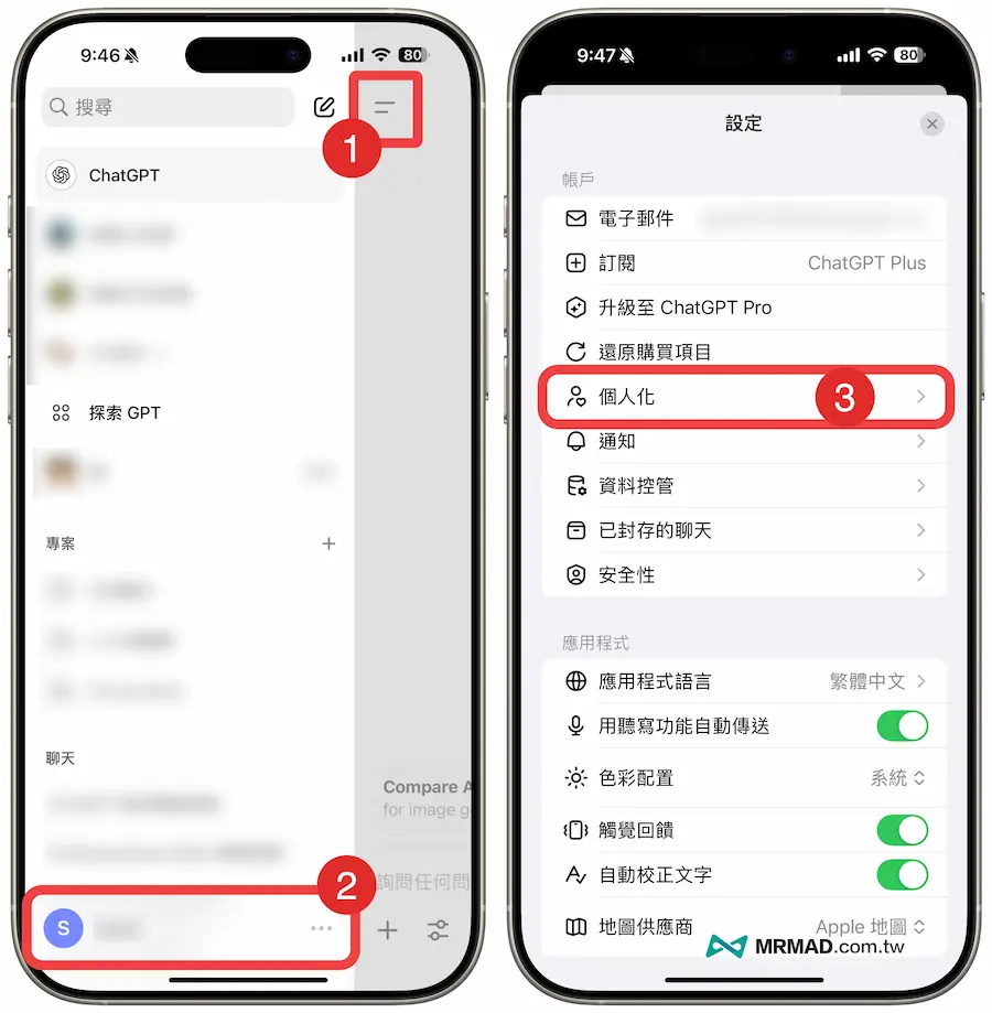 - 從ChatGPT APP左上角點擊「選單」鍵