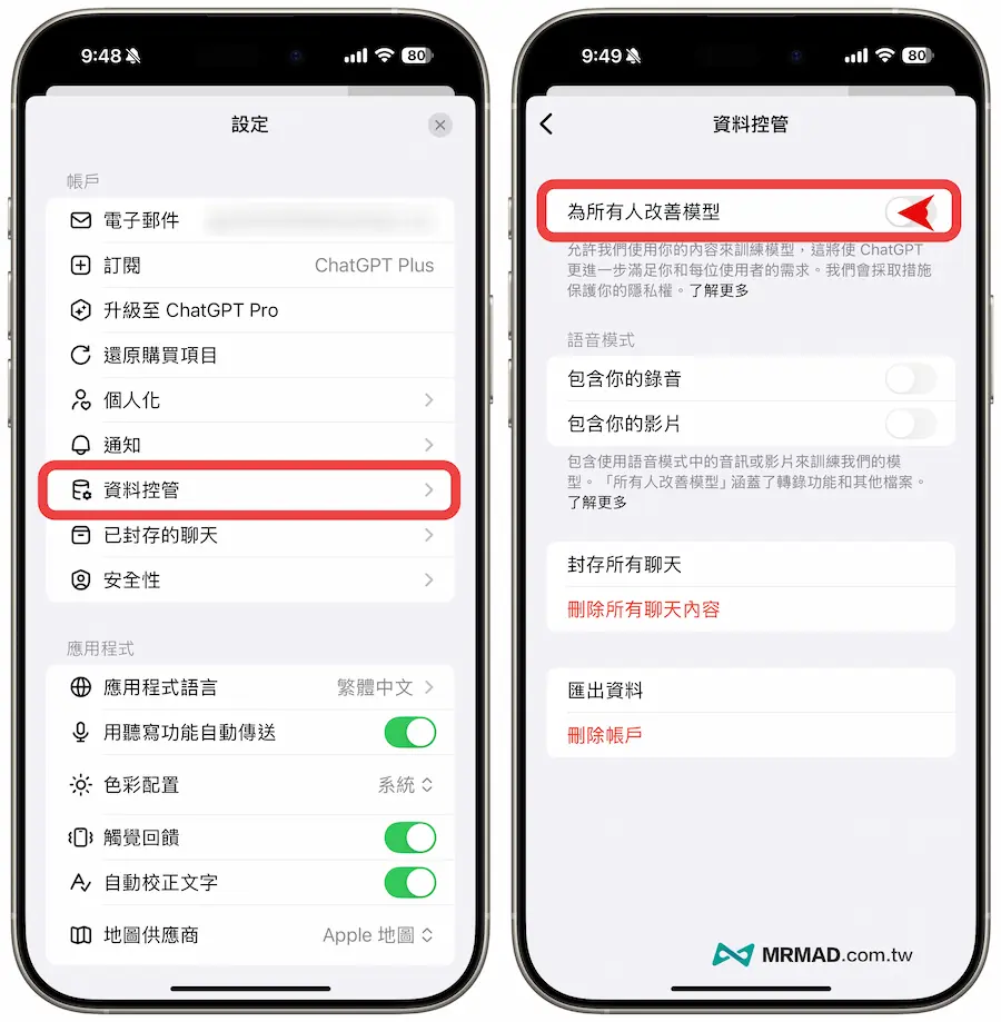 要是不想ChatGPT聊天記錄被官方用來訓練AI模型,也可以自己手動關閉拒絕提供,就能避免個資外洩和ChatGPT會收集對話紀錄,關閉ChatGPT聊天改善模型設定方式如下: