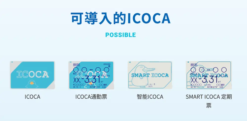 - 主要適用於 JR 西日本(關西地區)、大阪、京都、神戶等地的地鐵、私鐵、巴士,也可在東京、名古屋、北海道、九州等地的對應交通系統使用