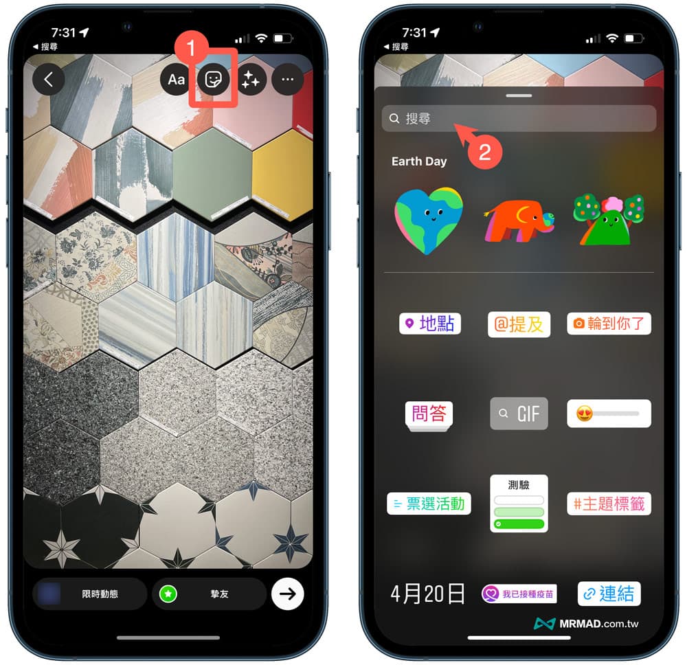 可以透過 IG 限時動態內,先選擇照片後,點選上方「貼紙」圖示,從搜尋框內輸入「關鍵字」後,就會立即顯示IG限時動態中文手寫字GIF,這篇提供五款,可以依照你喜愛的不同個性化IG手寫字。