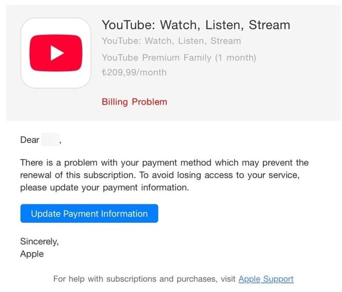 要是原本先前有訂閱YouTube Premium印度用戶,也都會陸續收到一封來自 YouTube Email通知「請更新付款方式以保留 YouTube Premium 會籍」,信件內會告知要求繳交證明或更改當地信用卡才能續訂,所以不要認爲沒被抓到就能僥倖,都只是時間上問題,系統會分批陸續通知使用非當地信用卡帳號。
