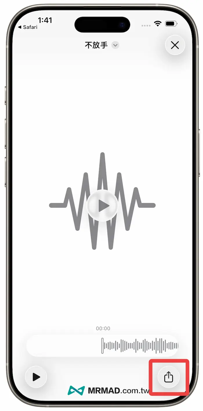 直接點開音訊檔案後,點擊右下角「分享」圖示按鈕。