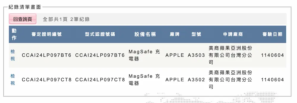 目前蘋果尚未正式對外公布這兩款全新 MagSafe 充電器,通常出現在 NCC 認證資料庫,代表離上市時間已經不遠。