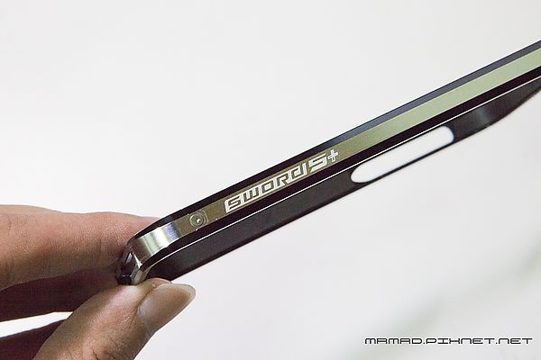 ▲看一下旁邊LOGO確認是Sword5+ ,非常的輕幾乎就像是拿一片塑膠的重量,但是金屬感覺