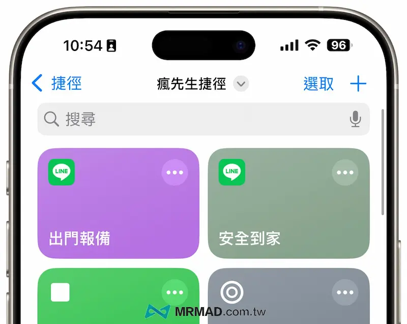 在下一步後就可以選擇剛製作好的 LINE 自動傳送出門報備,或是平安到家捷徑腳本。