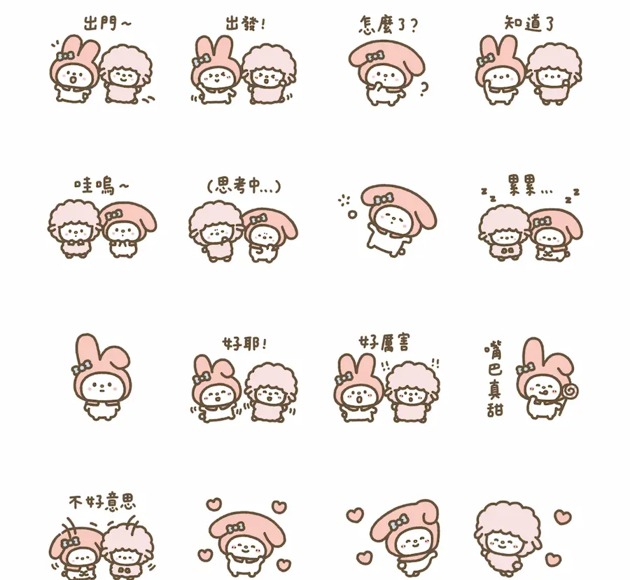 - 下載條件:隱藏貼圖,買「美樂蒂x 天竺鼠布丁 可愛日常聯名貼圖」,即可免費下載本組貼圖。(台灣限定)