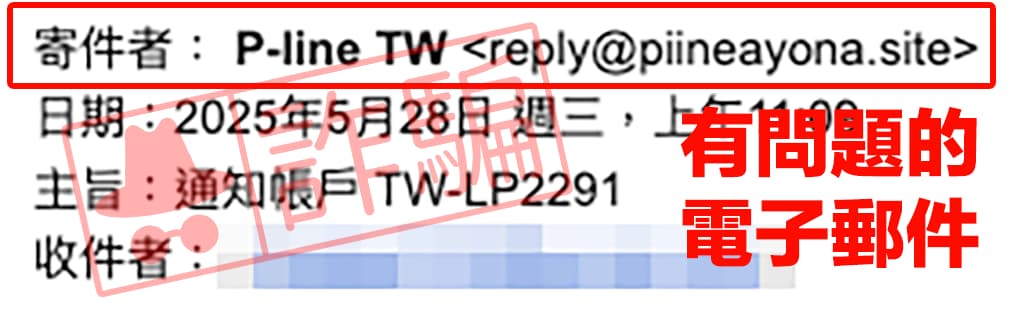 - 仔細檢查寄件者 Email 網域:開啟連結前,只能信任來自 @linecorp.com 或 @lycorp.com 官方網域信件。