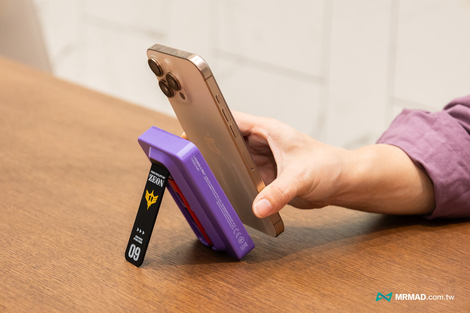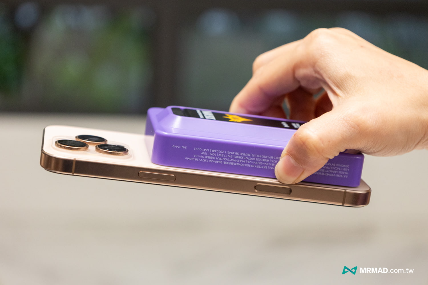 要是手機沒有支援 MagSafe,在配件內也有附贈磁圈吸片,直接貼在手機殼上或手機背面,或搭配 MagSafe 磁吸保護殼,同樣能夠穩定吸附在 MOMAX 1-Power X Pro 行動電源上。