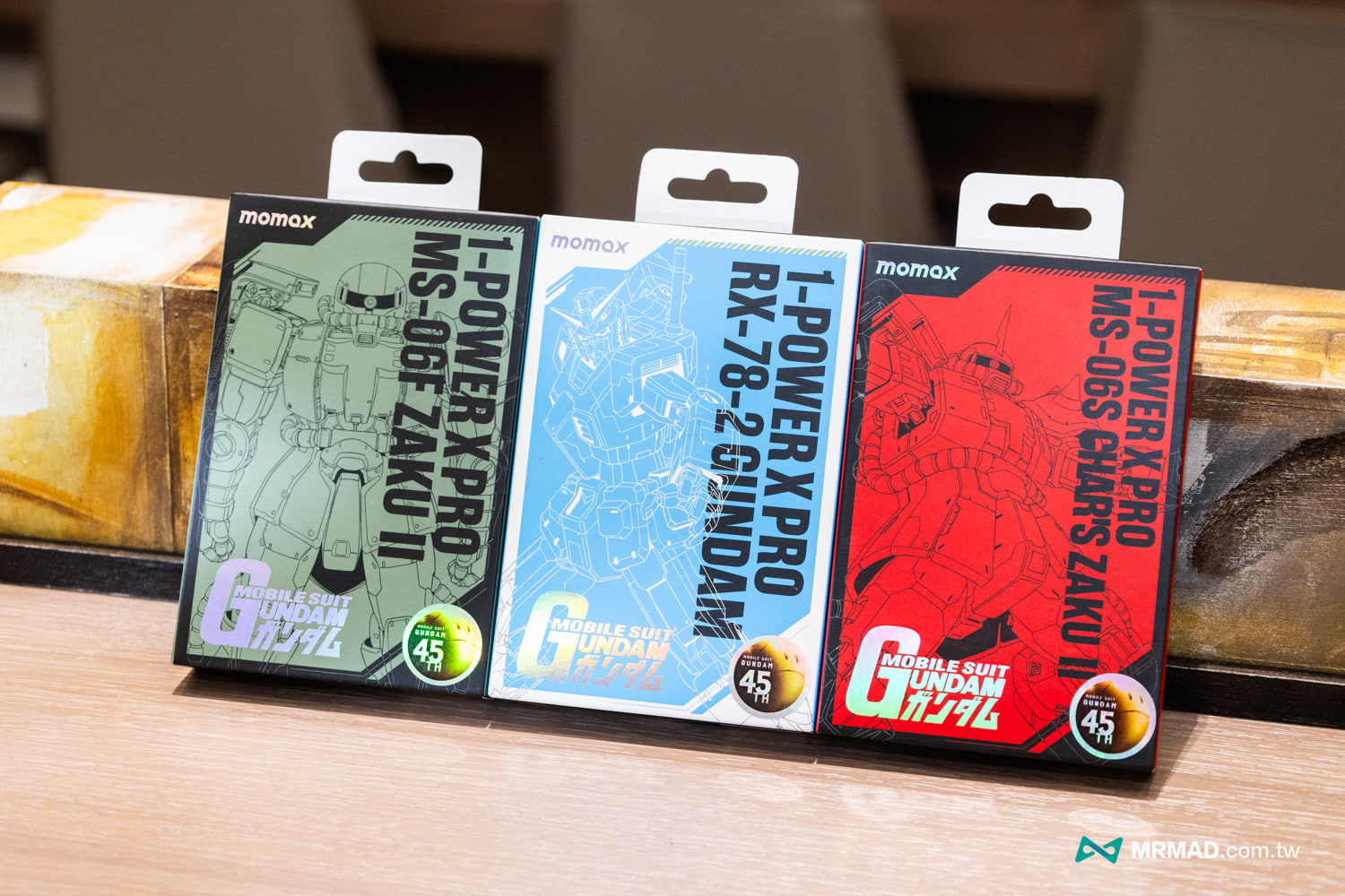 如果想要更帥氣的外型,還有限定鋼彈聯名款 MOMAX 行動電源可選,這四款也是由 Momax 與鋼彈系列設計師聯手打造,能夠讓經典動畫童年回憶鋼彈系列設計融入在科技產品內,就算非鋼彈迷光看到這種彩盒外觀,就非常值得收藏。