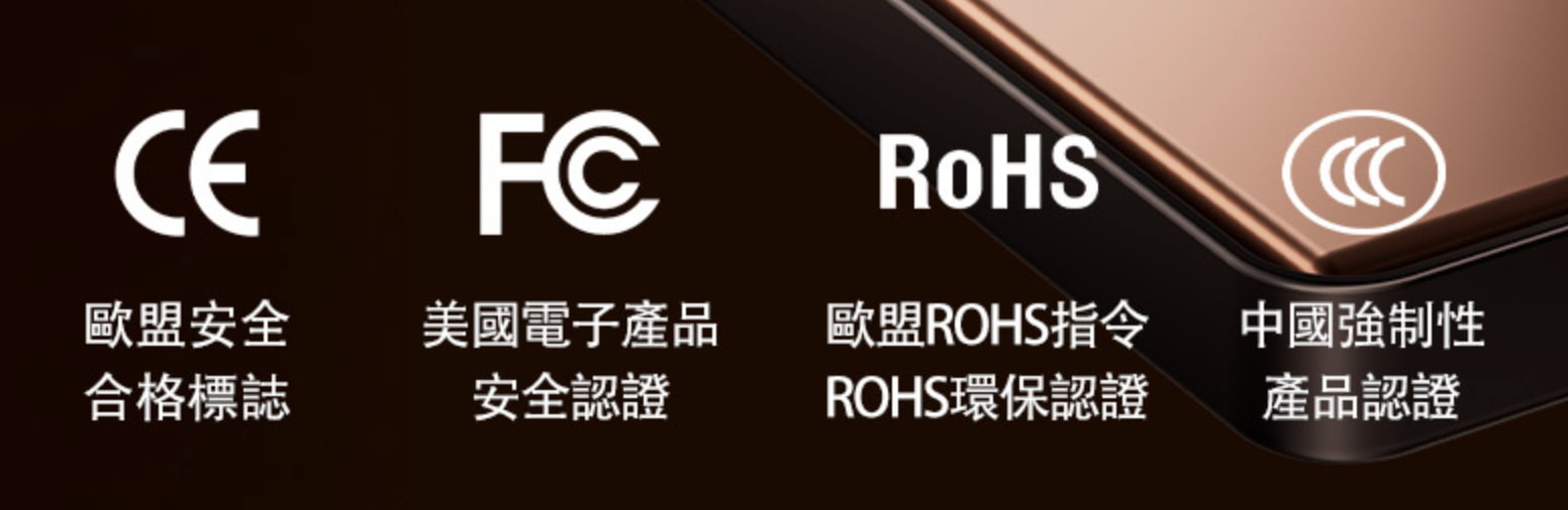 在安全設計部分,MOMAX 1-Power X Pro 行動電源也通過多國安全認證(CE歐盟、FCC美國安全認證、歐盟ROHS認證、台灣NCC、中國產品認證),且採用與蘋果原廠高品質、高安全度晶片,能提供穩定輸出和效率,還具備過充、過放、過熱等多重保護機制,能確保裝置在充電上安全。