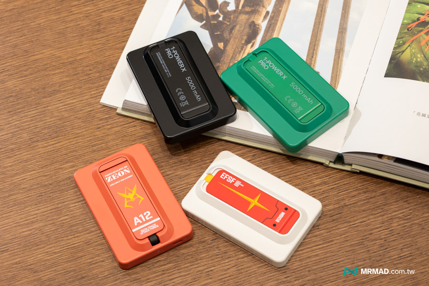 比較特別是 MOMAX 1-Power X Pro 鋼彈機動戰士聯名款,這對鋼彈迷絕對要入手,四款外觀設計也都超級有特色,就算你不是鋼彈迷,就外觀設計來看也是相當亮點,連秉兒現在出門都會專挑鋼彈行動電源,她說理由很簡單因為超級吸睛,還有獨特鏡面的設計,隱藏支架和Type-C充電線,出門隨時都能替iPhone手機充電,朋友還經常會問這哪款行動電源,馬上就有聊不完的話題。