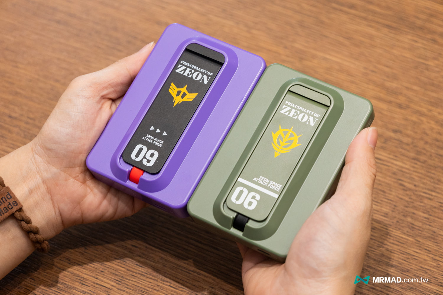 另外10000mAh的「里克德姆款」行動電源在配色上也幾乎與鋼彈本身色系一致,紫色搭上黑色超級好看,拿在手上替手機充電帥氣感十足。