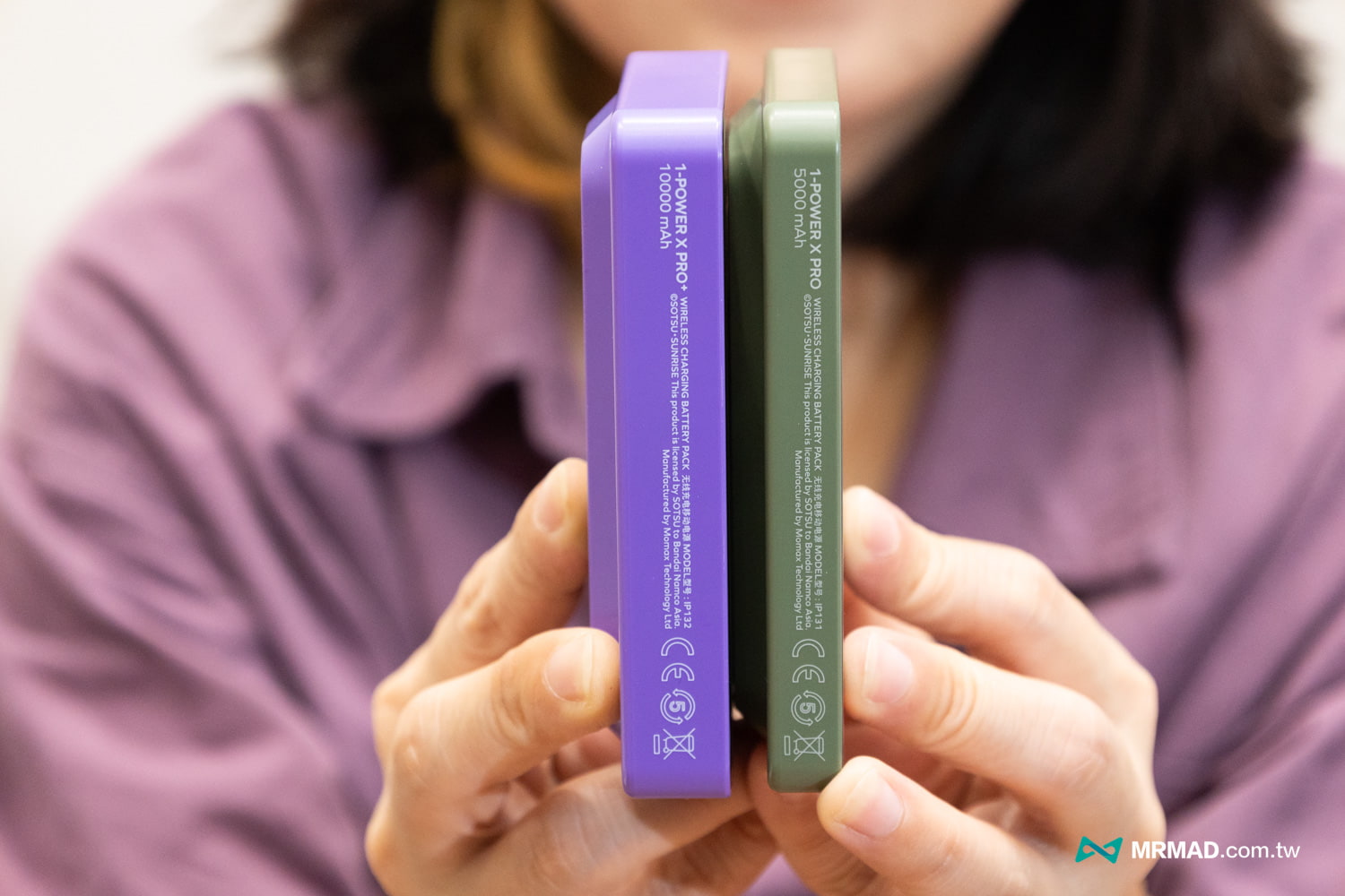加上 MOMAX 1-Power X Pro 結合 MagSafe無線充電、自帶USB-C 線充電以及外接 USB-C 孔額外充電,最高可同時替三台設備充電,同時還有 5000mAh 和 10000mAh兩種容量可選,在購買建議只是臨時出門選5000mAh,要是考量到要出門和大量使用就選 10000mAh。