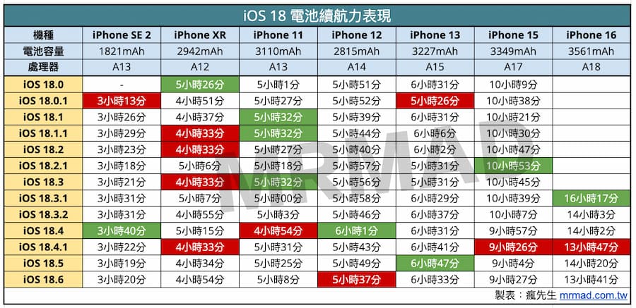 iOS 18.6續航力在 iOS 18 系列中表現如何?