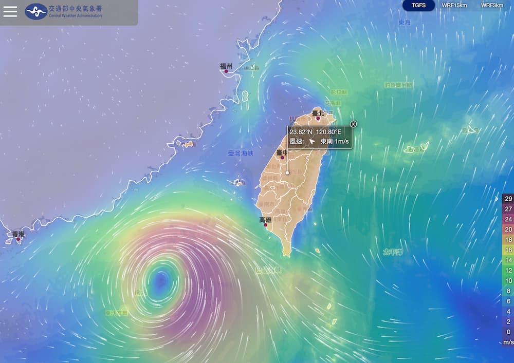 范斯高颱風最新動態追蹤平台1. 中央氣象署風場預報顯示系統