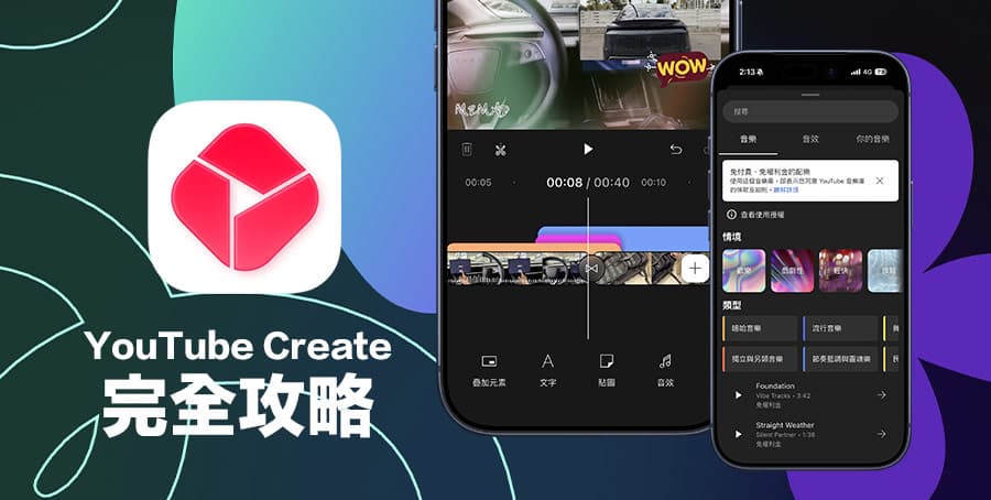 它目前或許還沒有 CapCut 那麼多花俏一鍵成片模板,也沒有 LumaFusion 那麼強大的多軌剪輯功能,但是 YouTube Create 算是解決了手機影片剪輯創最痛的三個點「版權音樂」、「人聲降噪」與「自動字幕」,如果你需要找一款免費手機影片剪輯APP絕對可以下載 YouTube Create 來用!